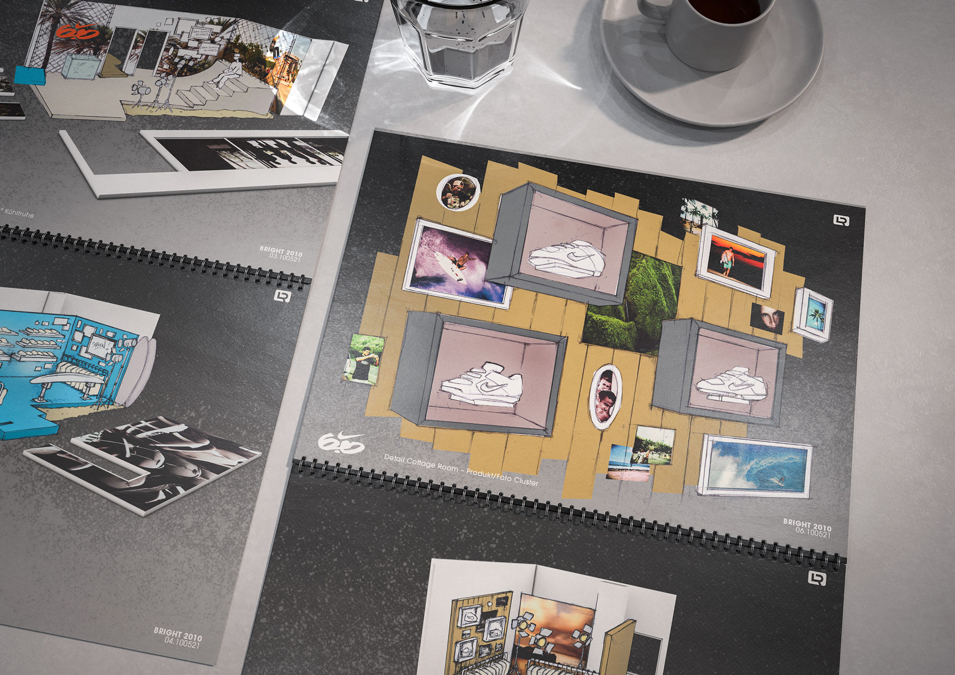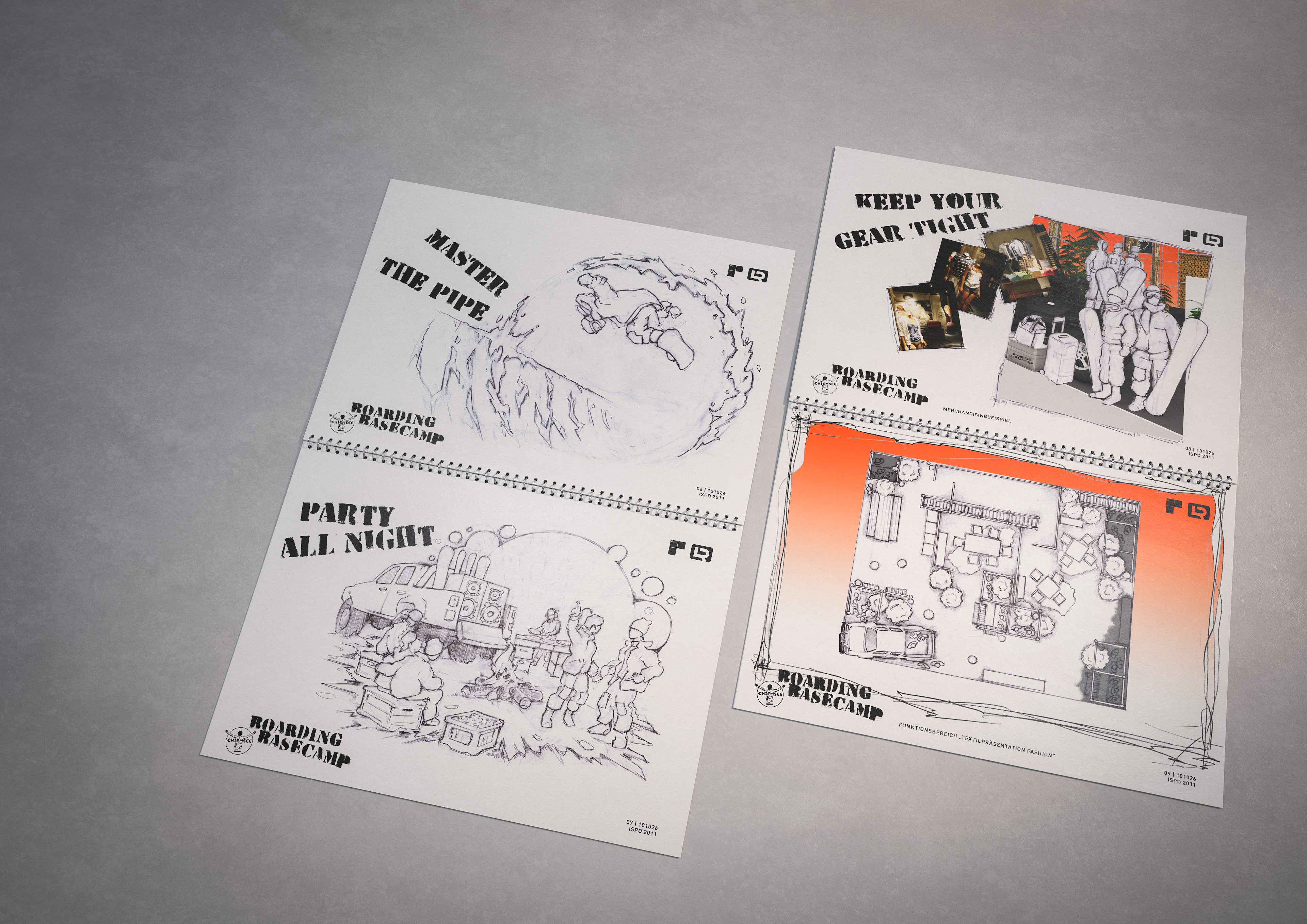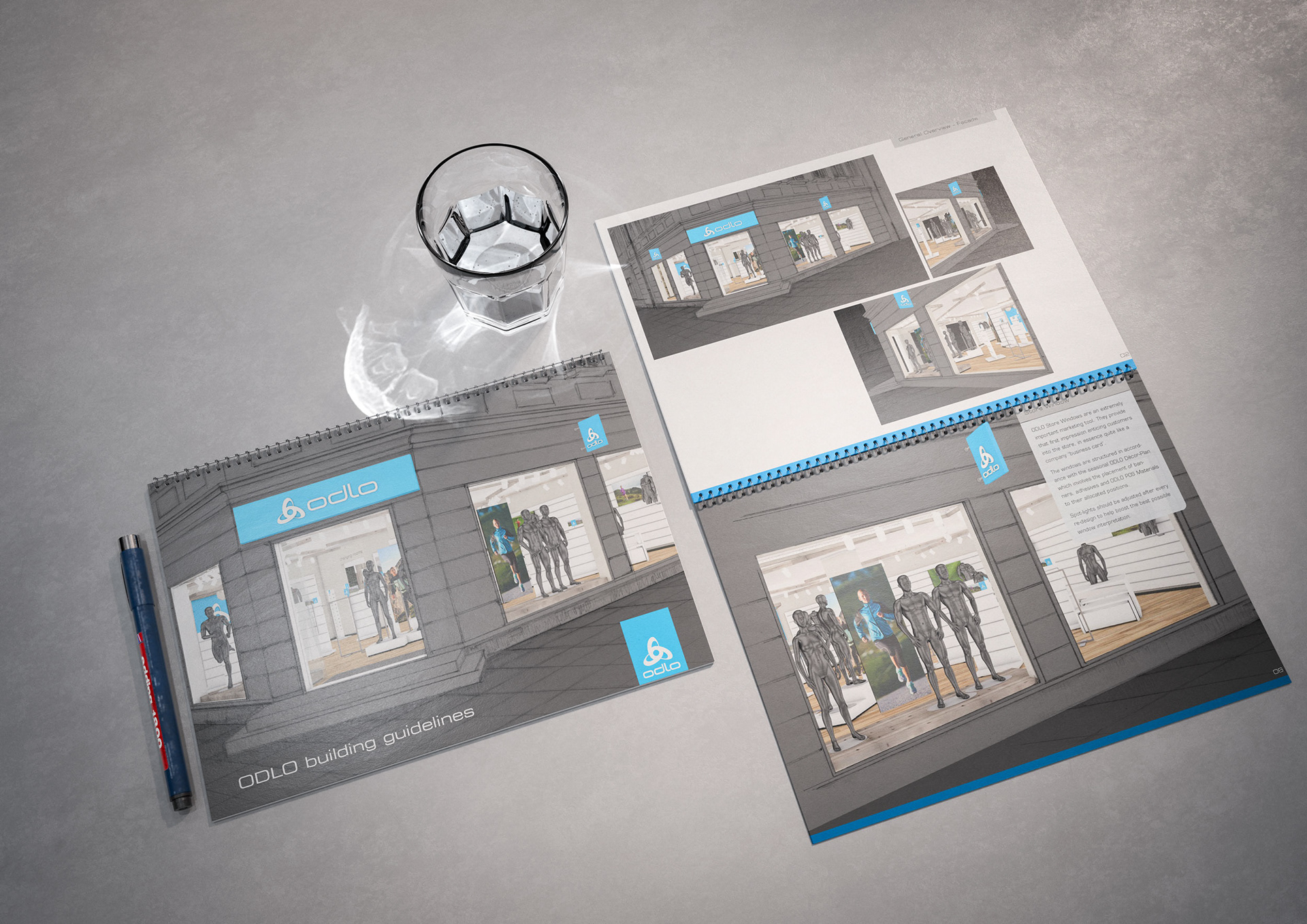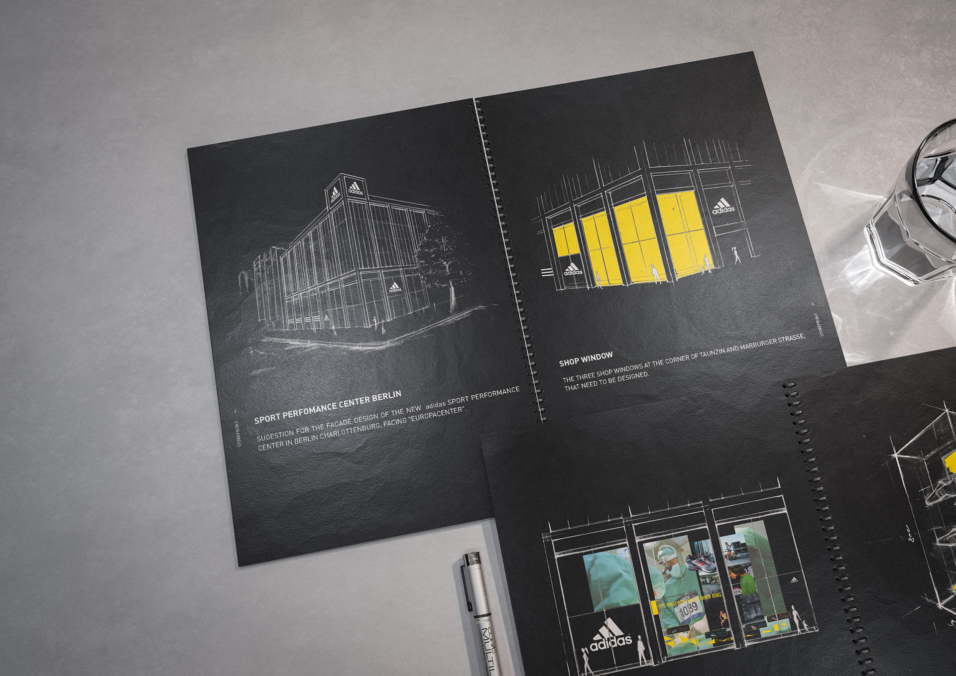 One of the techniques that enabled the rapid creation of these documents was my drawings and concept sketches—often combined with 3D-rendered elements and collaged content from existing visual material.