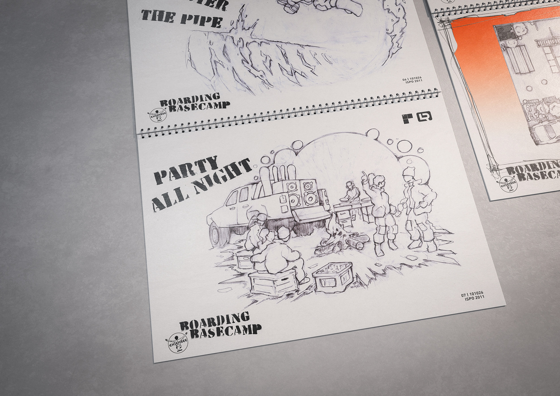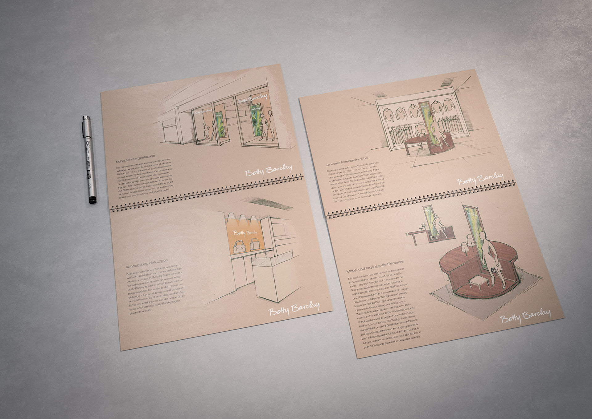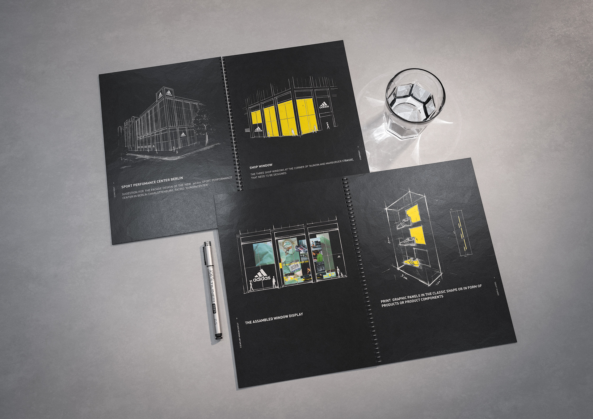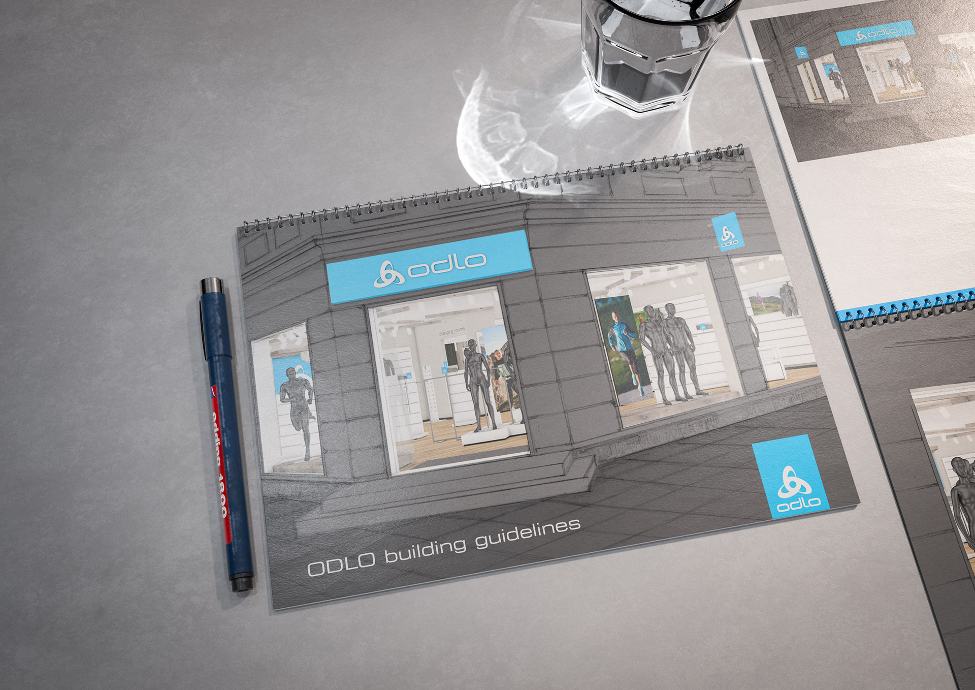 One of the techniques that enabled the rapid creation of these documents was my drawings and concept sketches—often combined with 3D-rendered elements and collaged content from existing visual material.