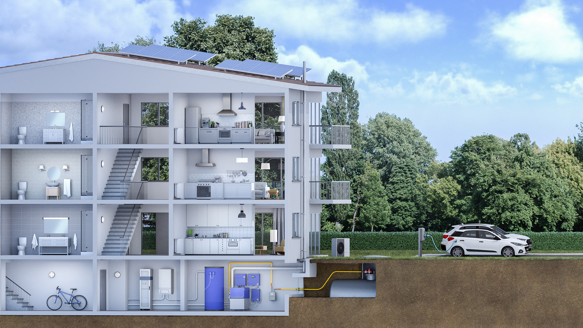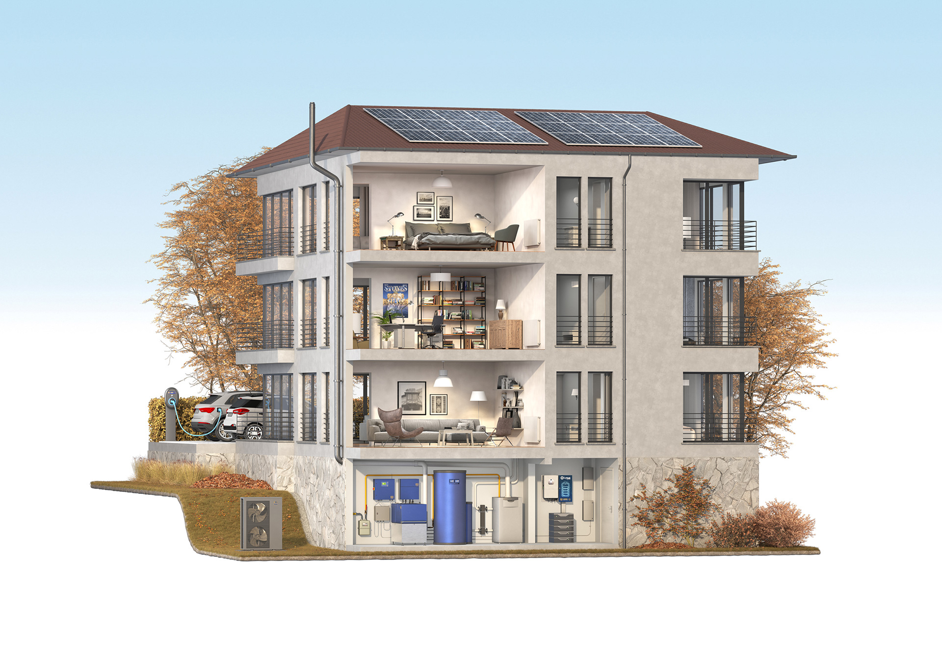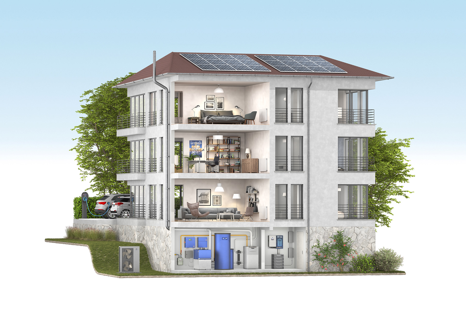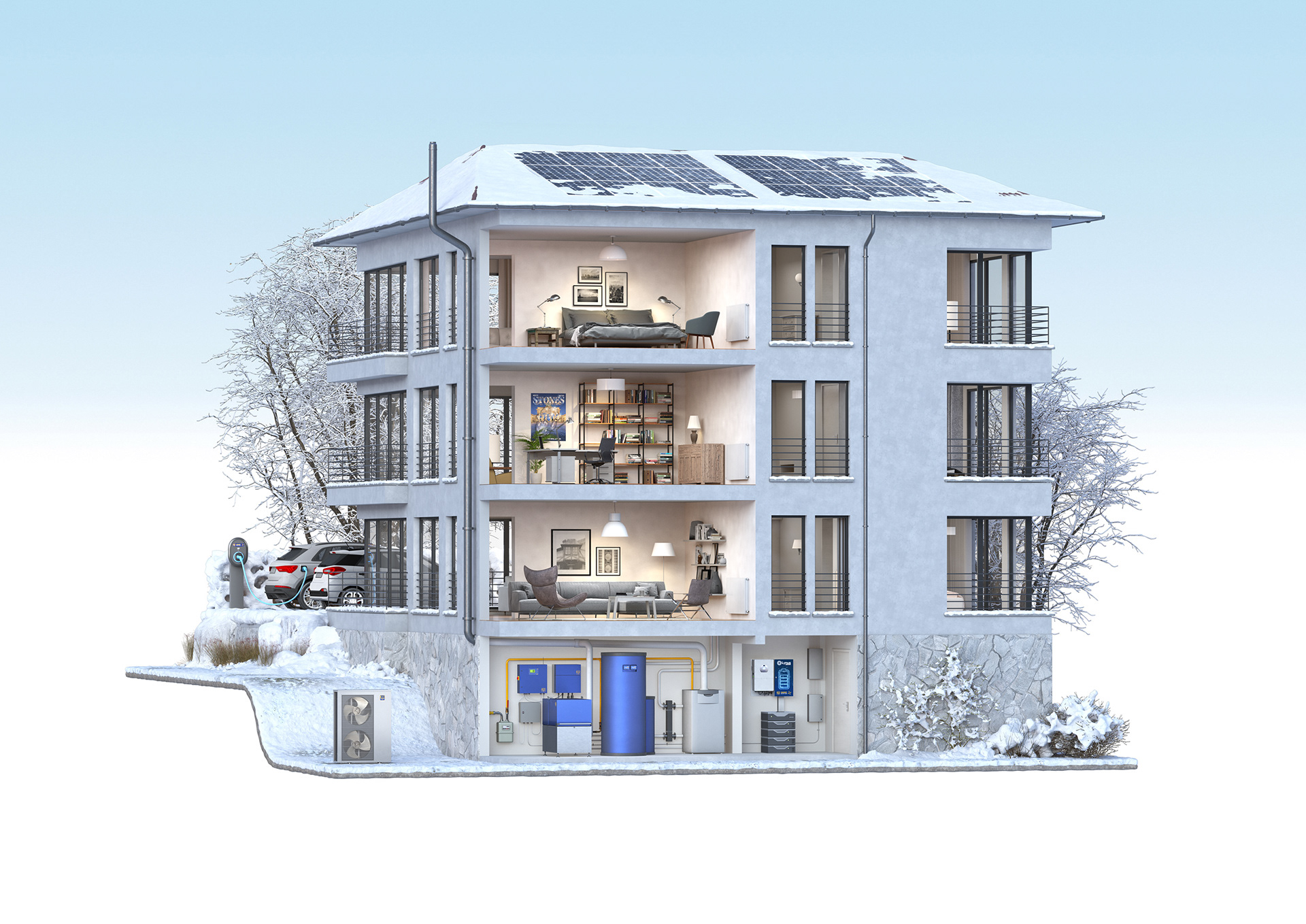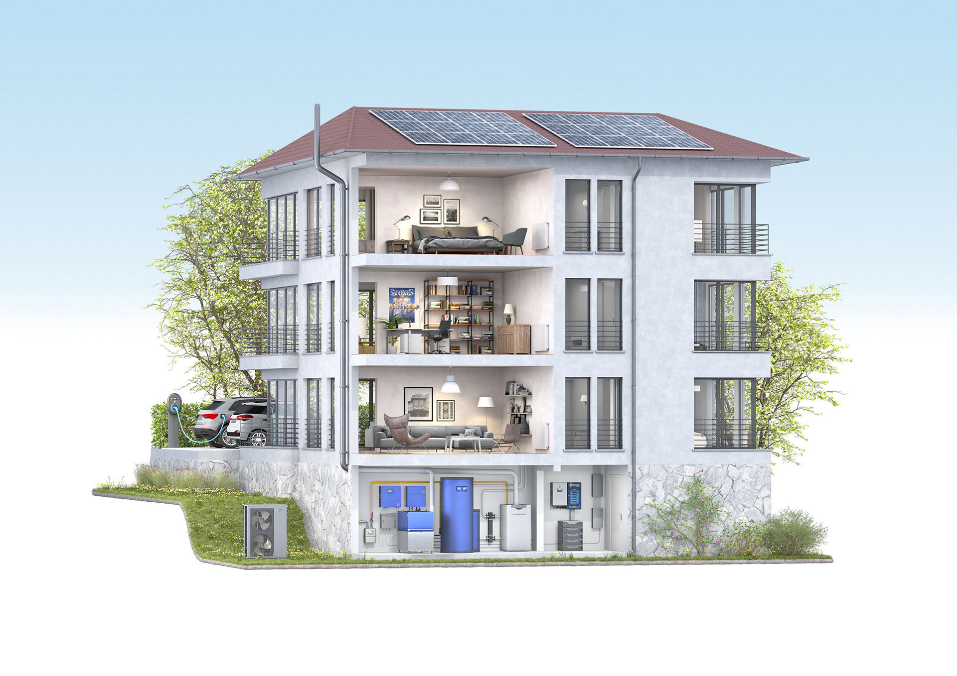 The more recent visualisations place greater emphasis on illustrating how these smart, complete systems are arranged around the living spaces they supply with energy.