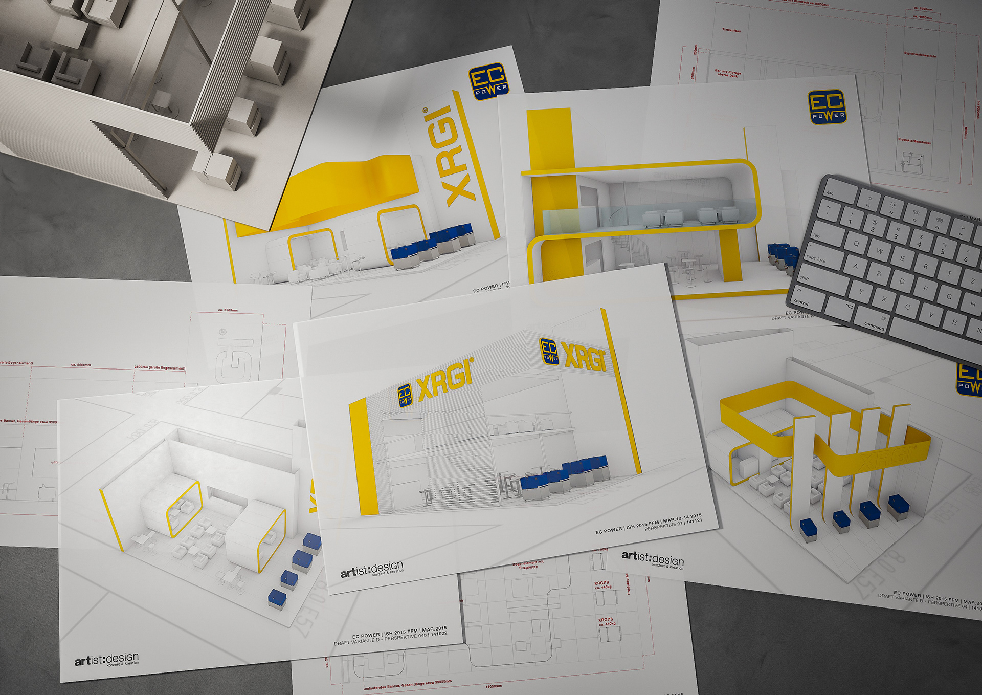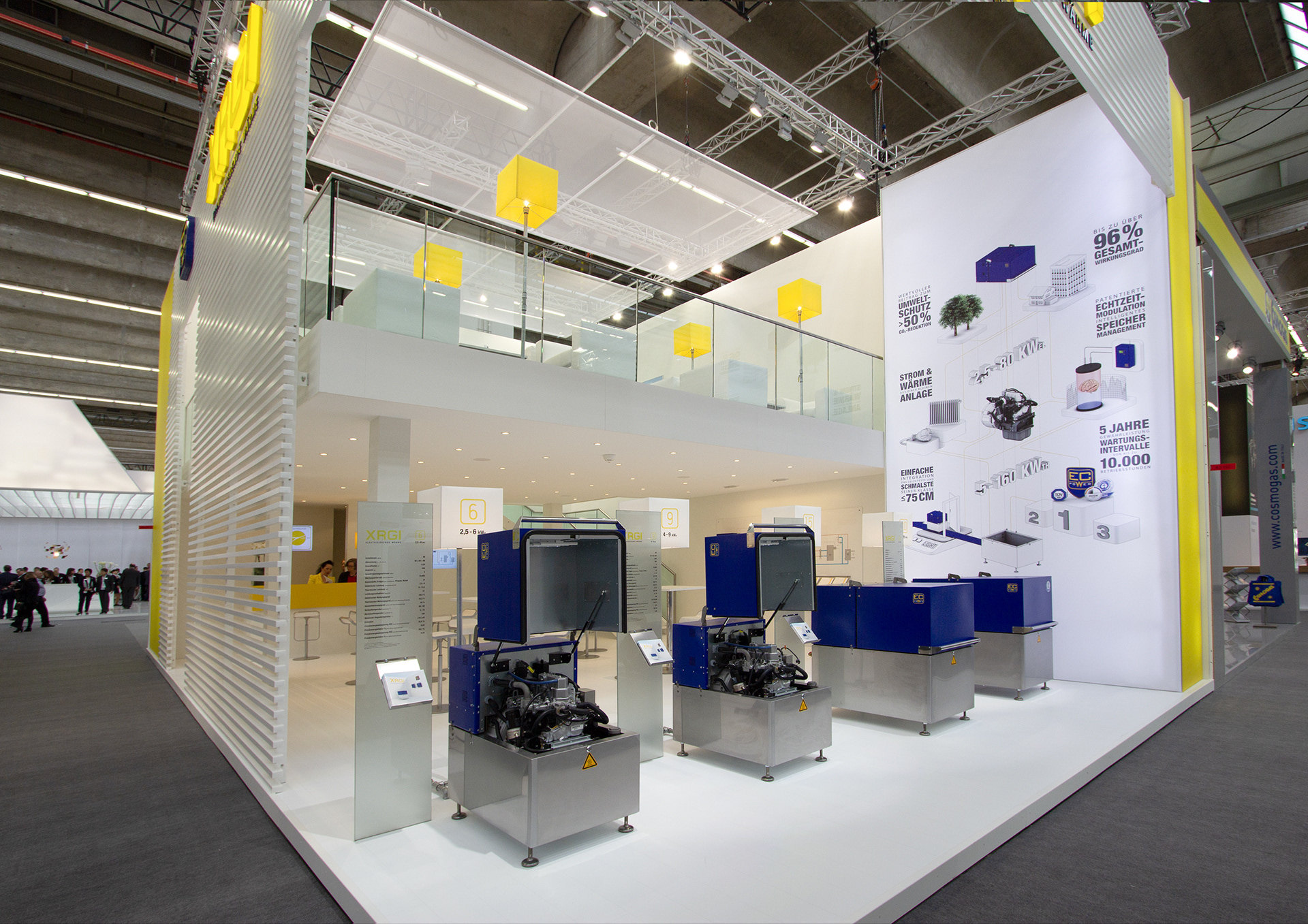 Over the course of 2014, the economic situation in the combined heat and power sector improved significantly, prompting our client, EC POWER, to seize the opportunity to expand its trade fair presence substantially. In this context, our agency, Artist Design, where I had been employed for two years at the time, was commissioned to design a two-storey exhibition stand.