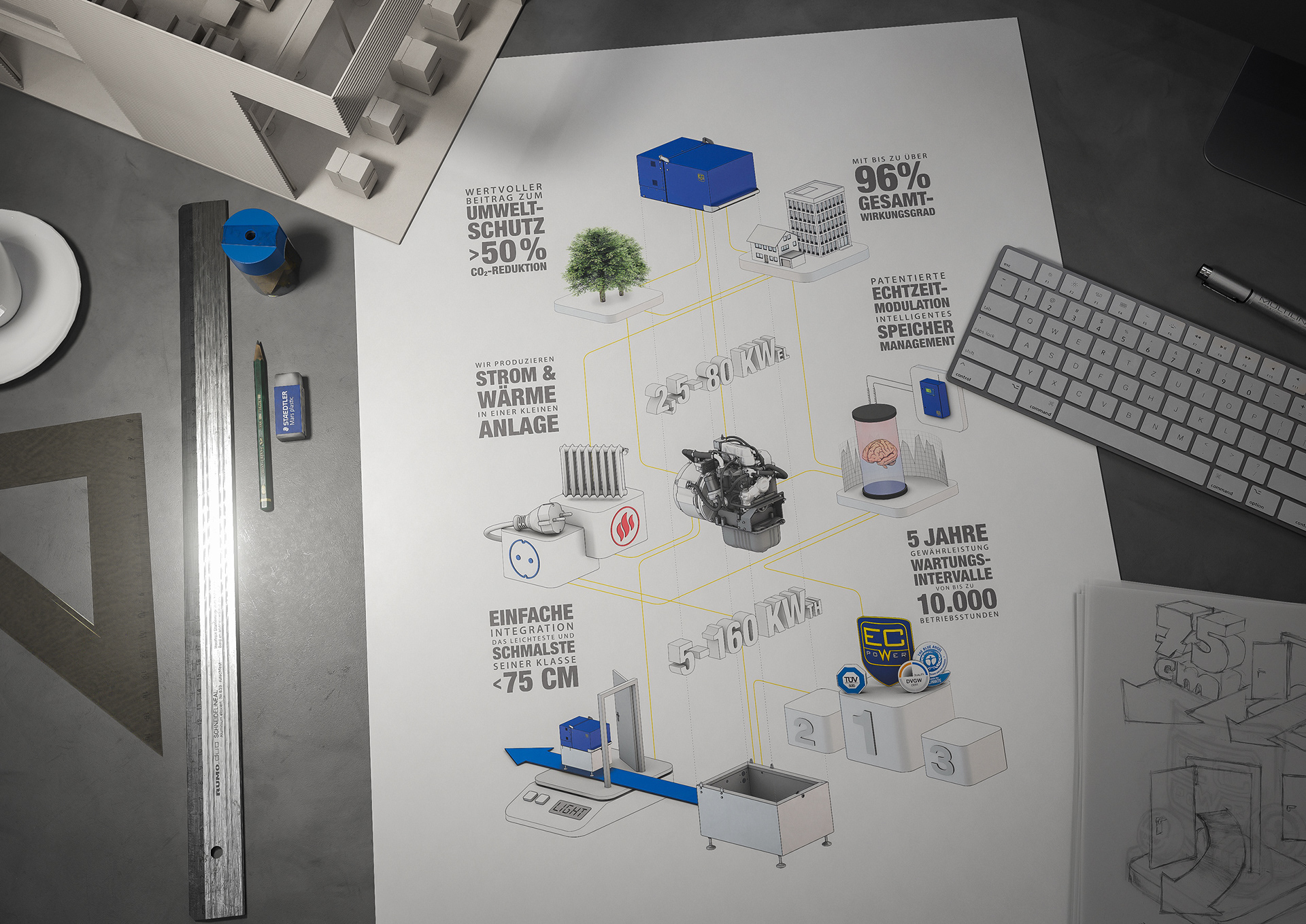 Additionally, I was responsible for developing the large graphic, which used a cartoon-style exploded view to illustrate the key benefits of combined heat and power systems.