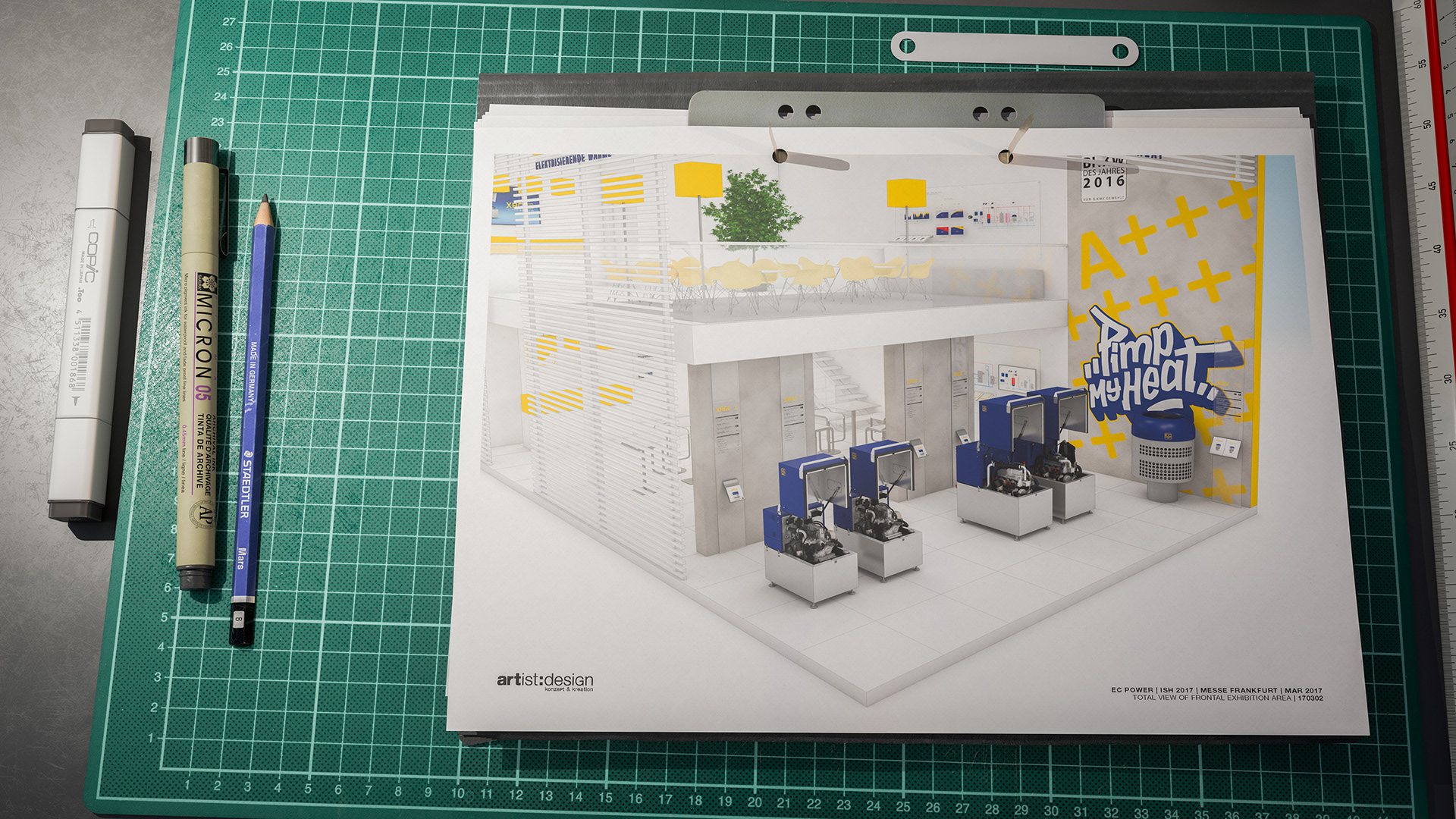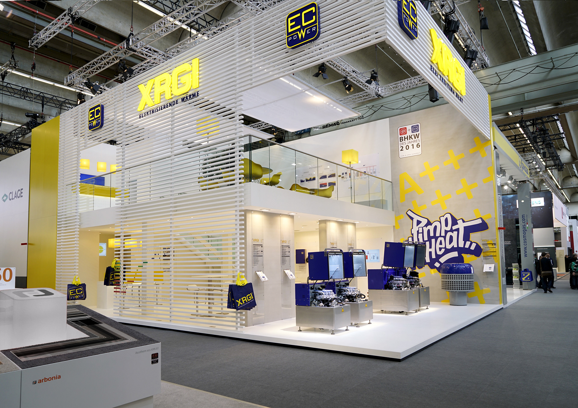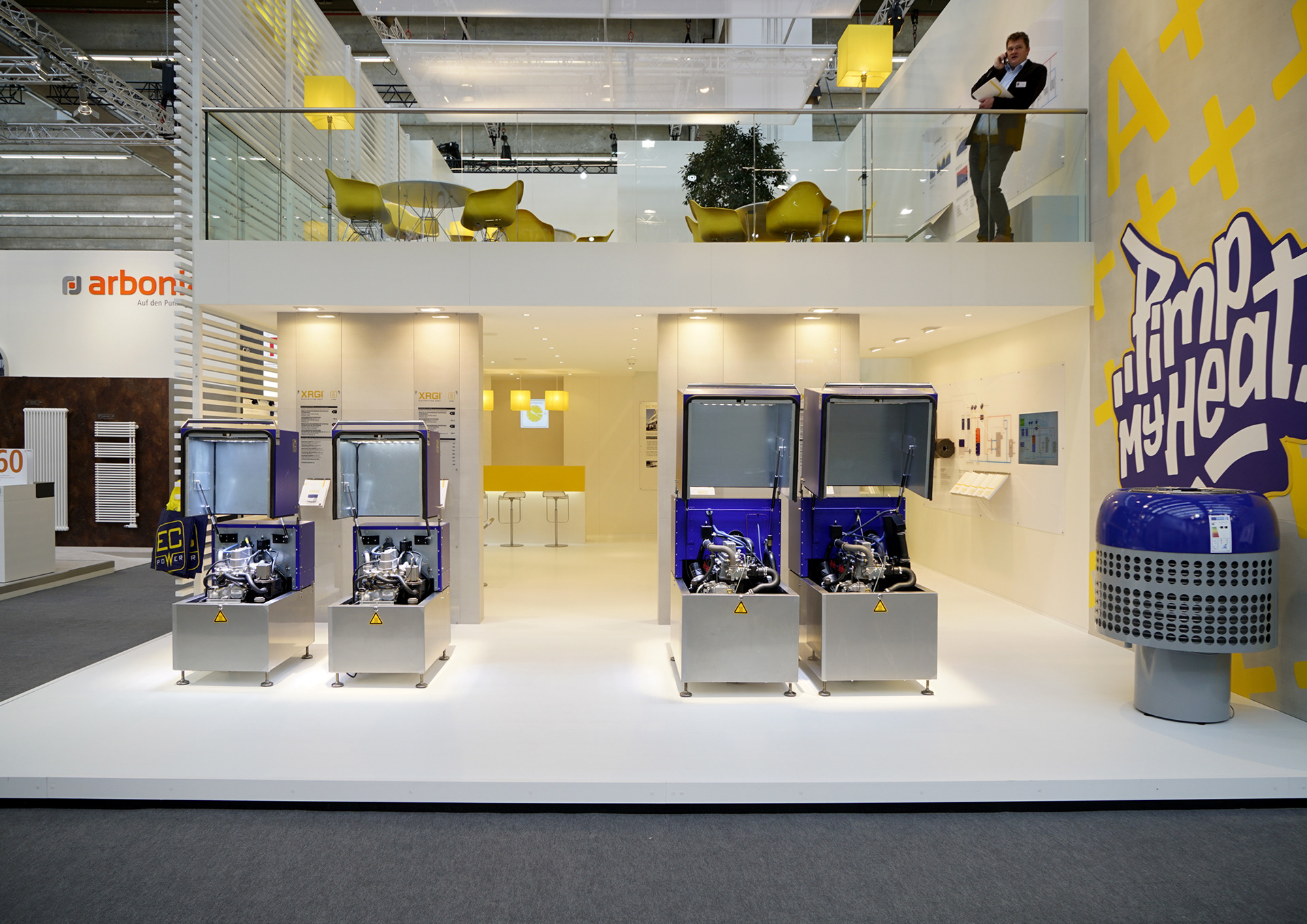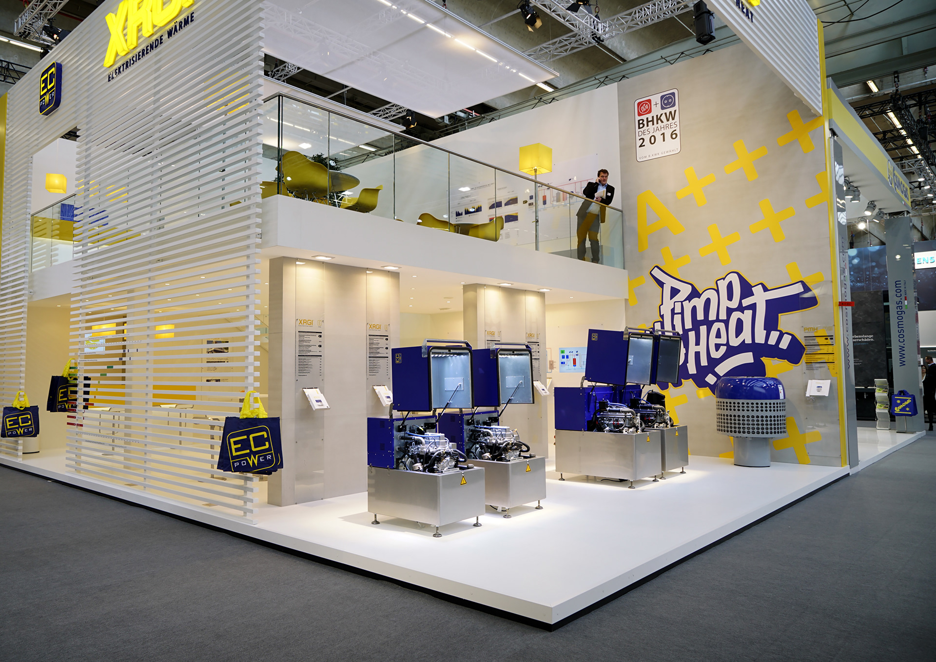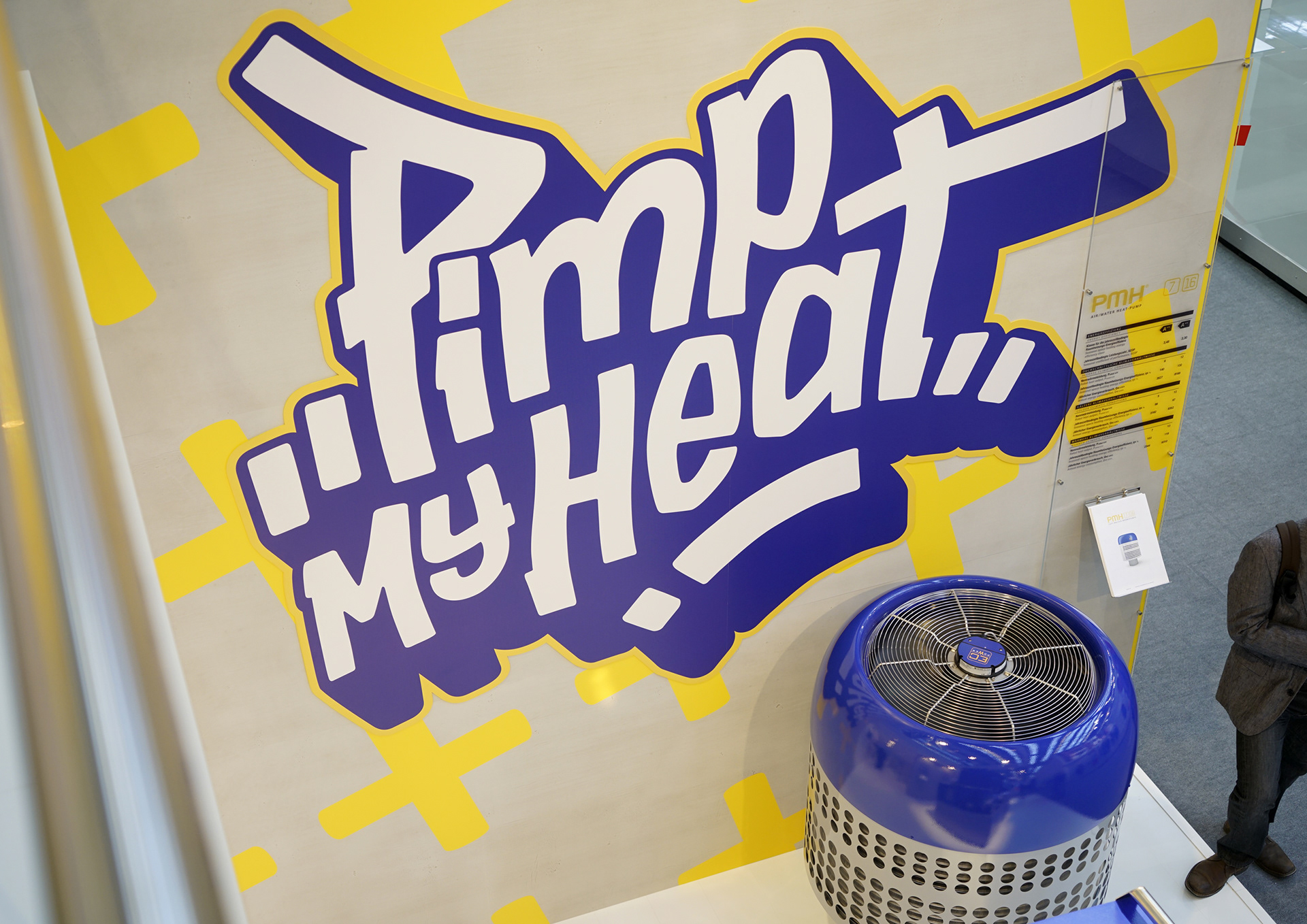 In addition to showcasing the established XGRI® combined heat and power (CHP) product line, the primary focus was on launching a new heat pump. A striking graphic featuring an 'A' with seemingly infinite plus signs was displayed to symbolize surpassing the 'A+++' energy class, enhanced by the graffiti-style slogan 'Pimp my Heat,' which I personally designed.