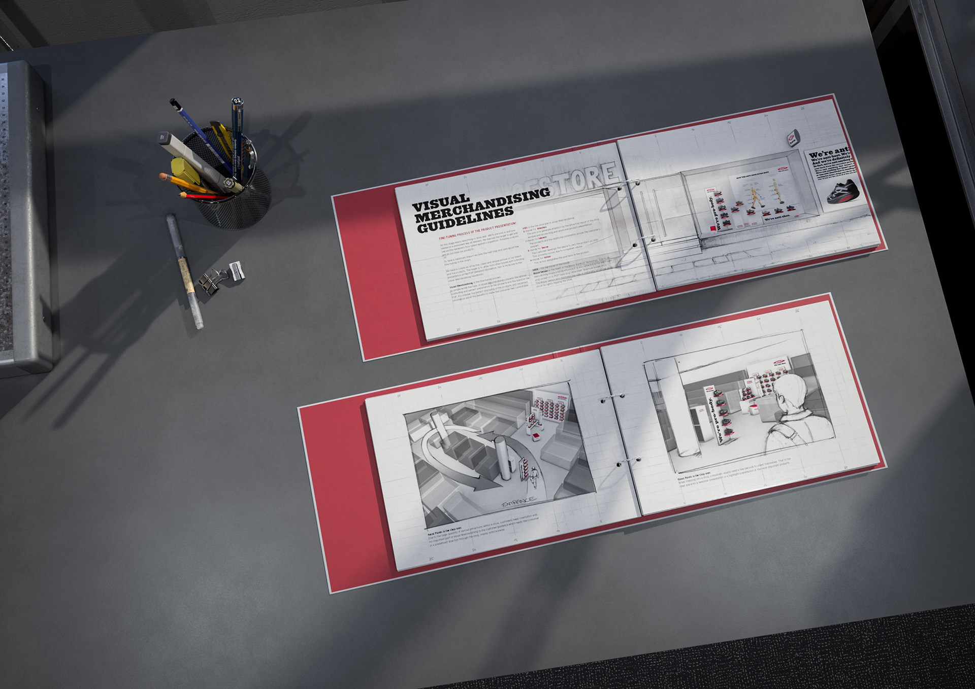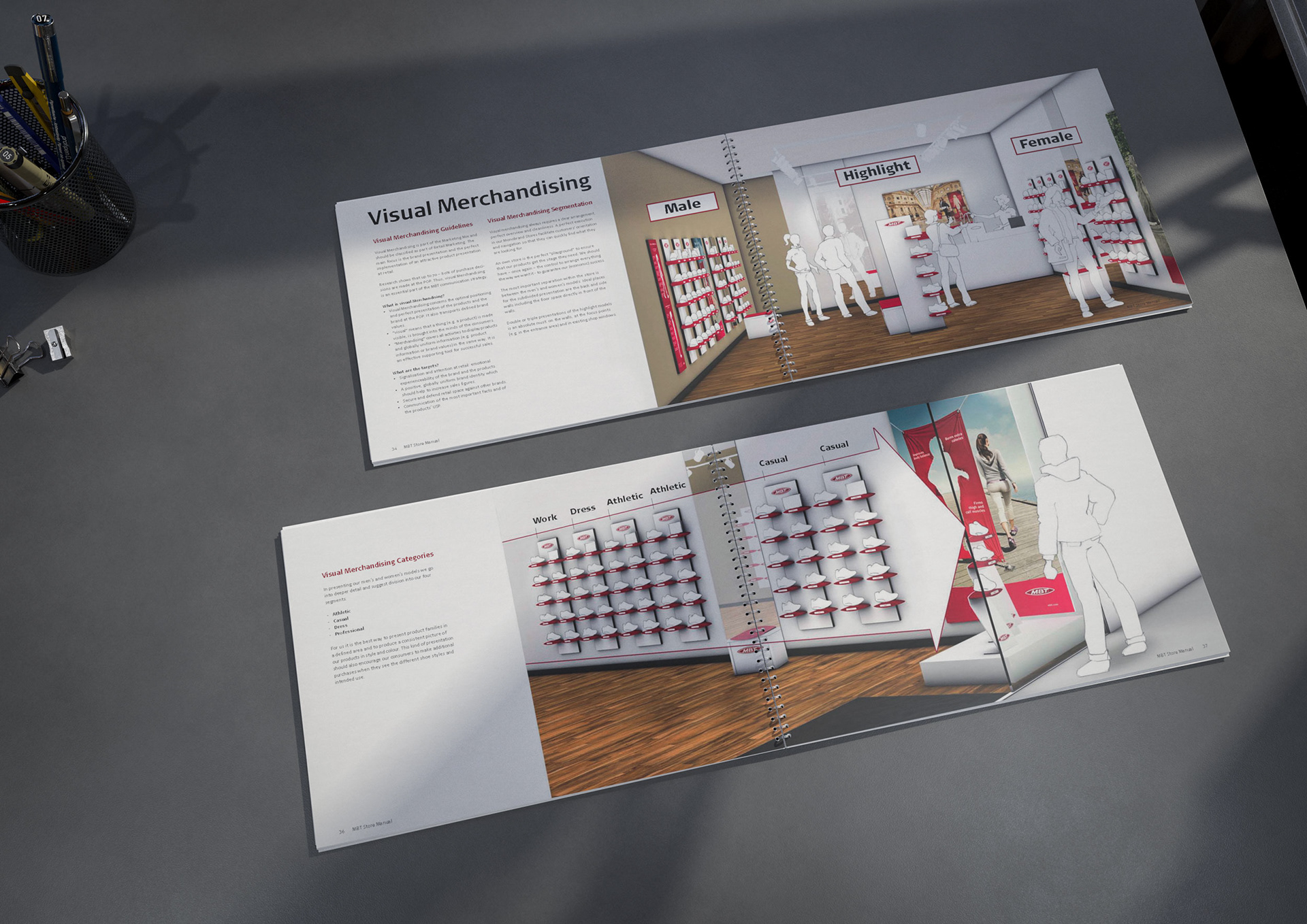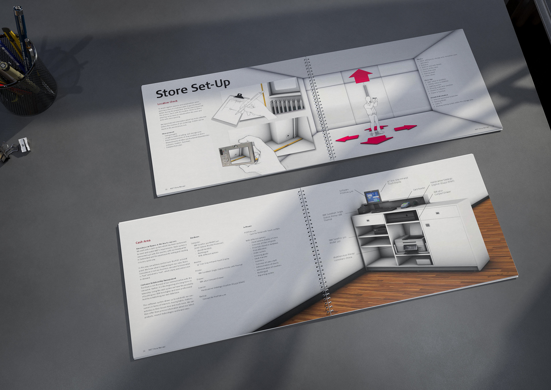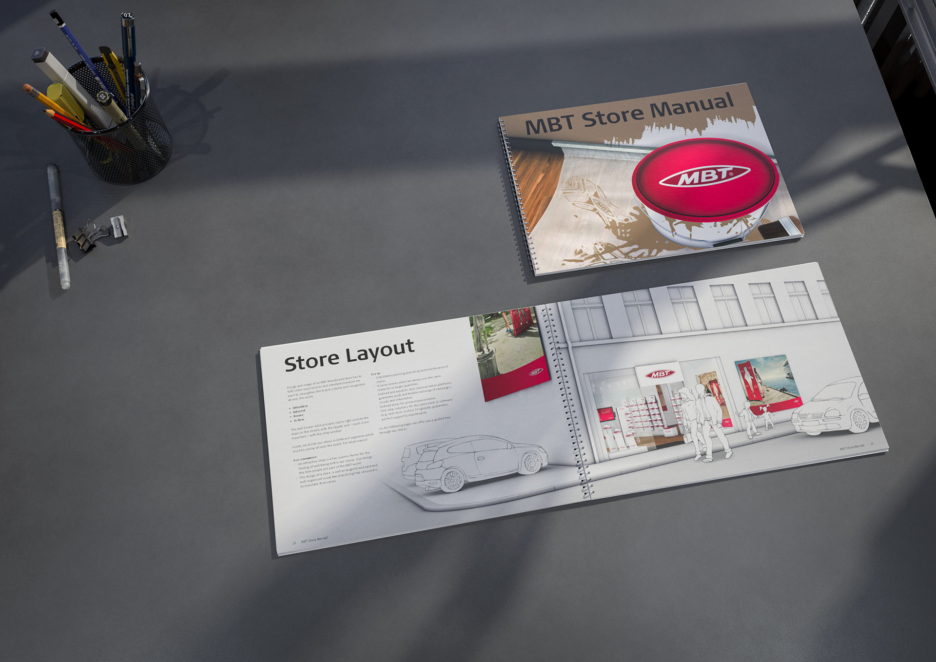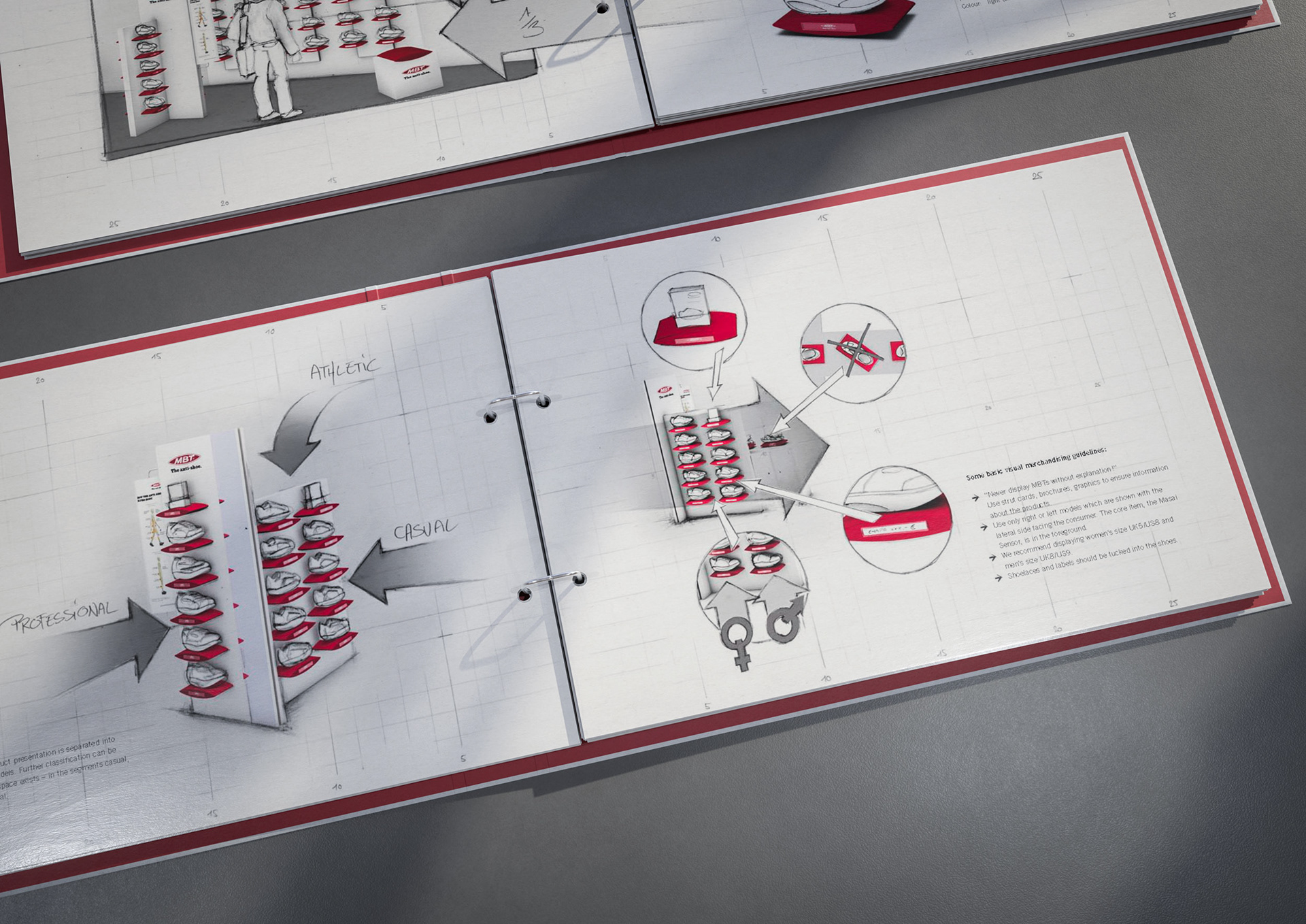 Through close collaboration with MBT, various guidebooks on topics such as retail marketing, visual merchandising, and shop design were developed and regularly updated. These detailed manuals covered aspects such as opening an MBT shop – from assessing potential locations and determining the required retail space to planning timelines for collaboration with the parent company and finally launching the store. Additionally, they outlined fundamental principles for product arrangement within the shop, guidelines for window display presentations, and other key retail aspects.