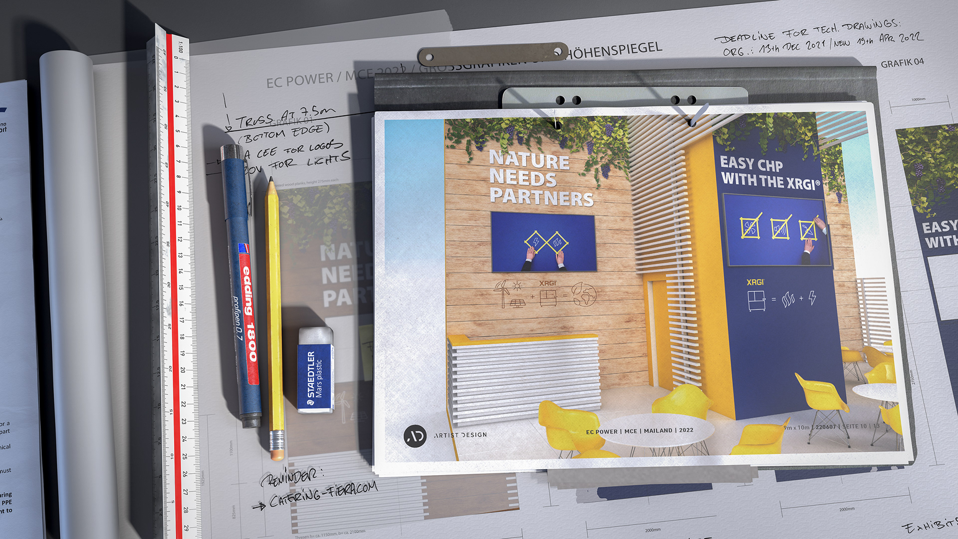 The design for EC POWER's booth at the Mostra Convegno Expocomfort 2022 in Milan – one of the world's leading trade fairs in the HVAC and plumbing sector – was largely based on the successful booth from MCE 2018.
