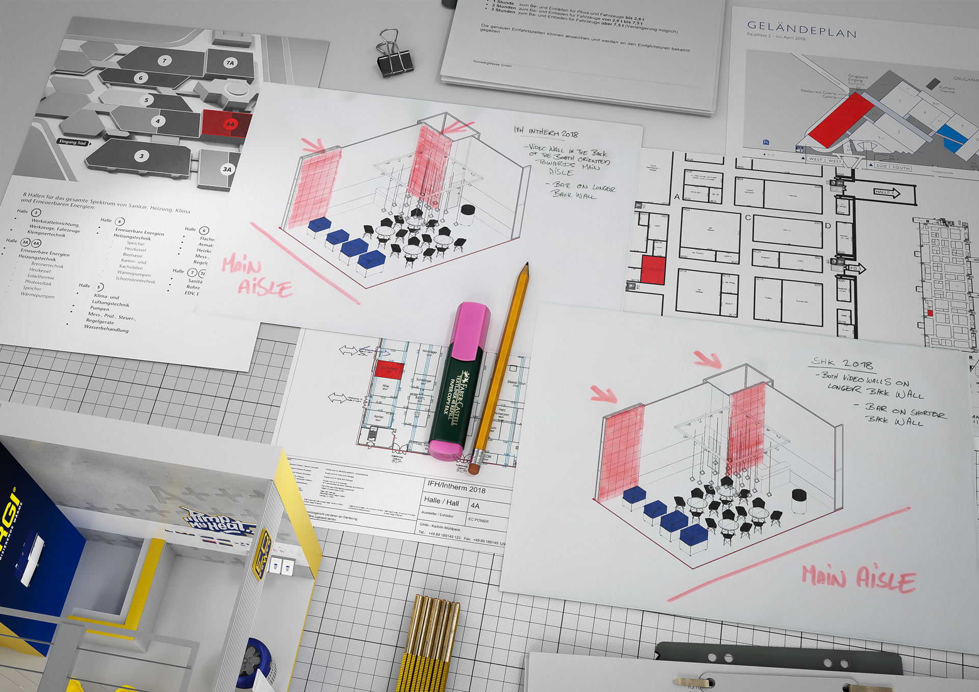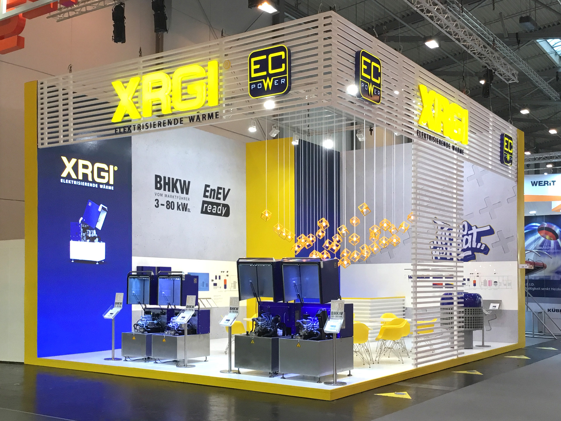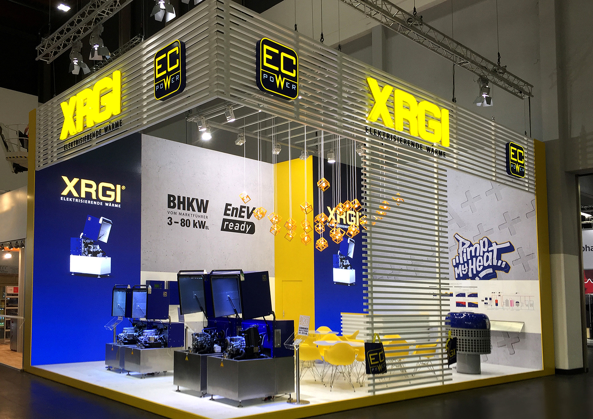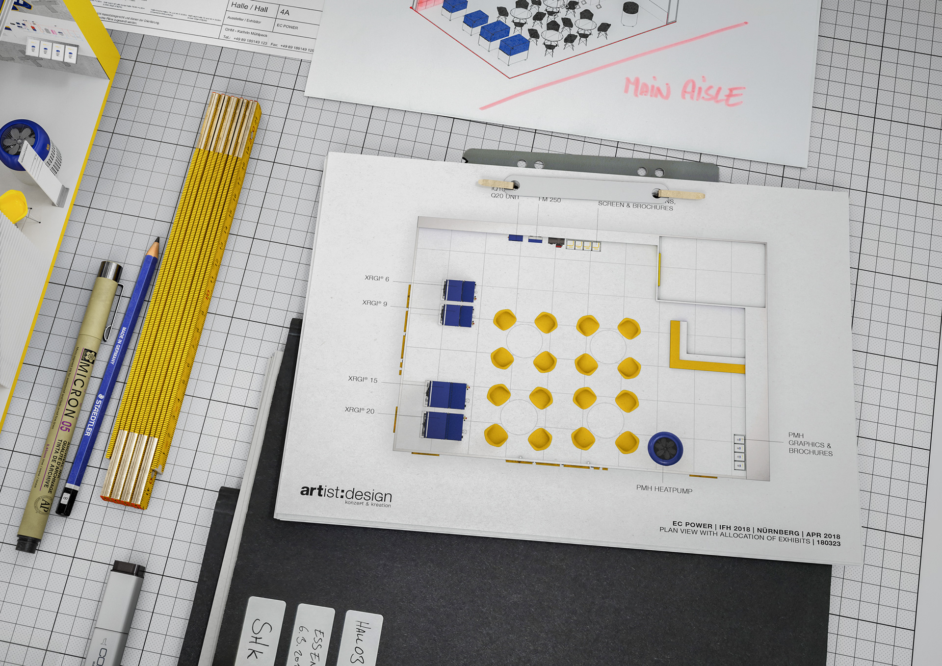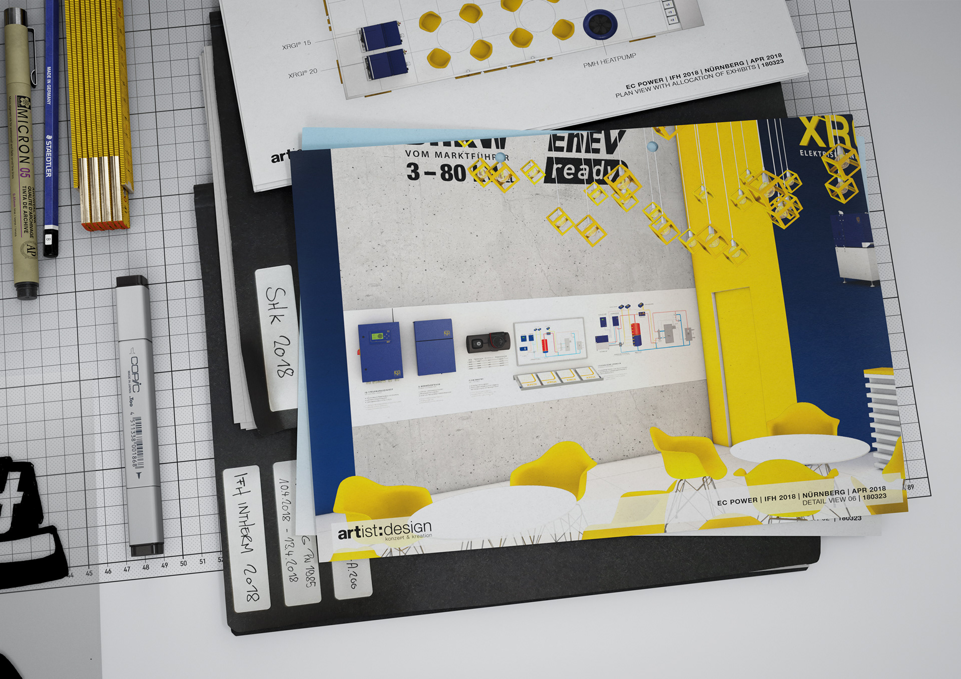 Both trade fairs have been important fixtures in the calendar of Artist Design and the client EC POWER for many years. Held biennially, the 2018 events offered the opportunity to cover both with a single design due to identical stand dimensions, providing organisational and financial advantages.