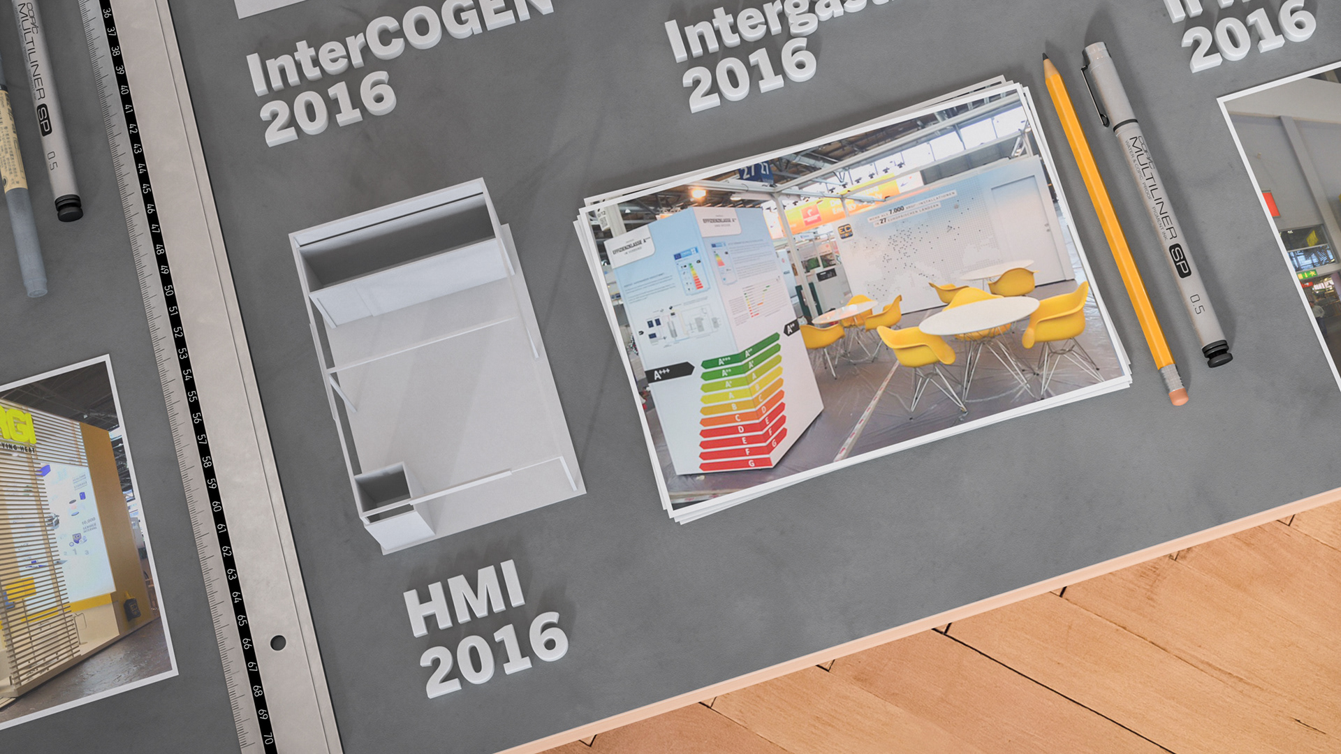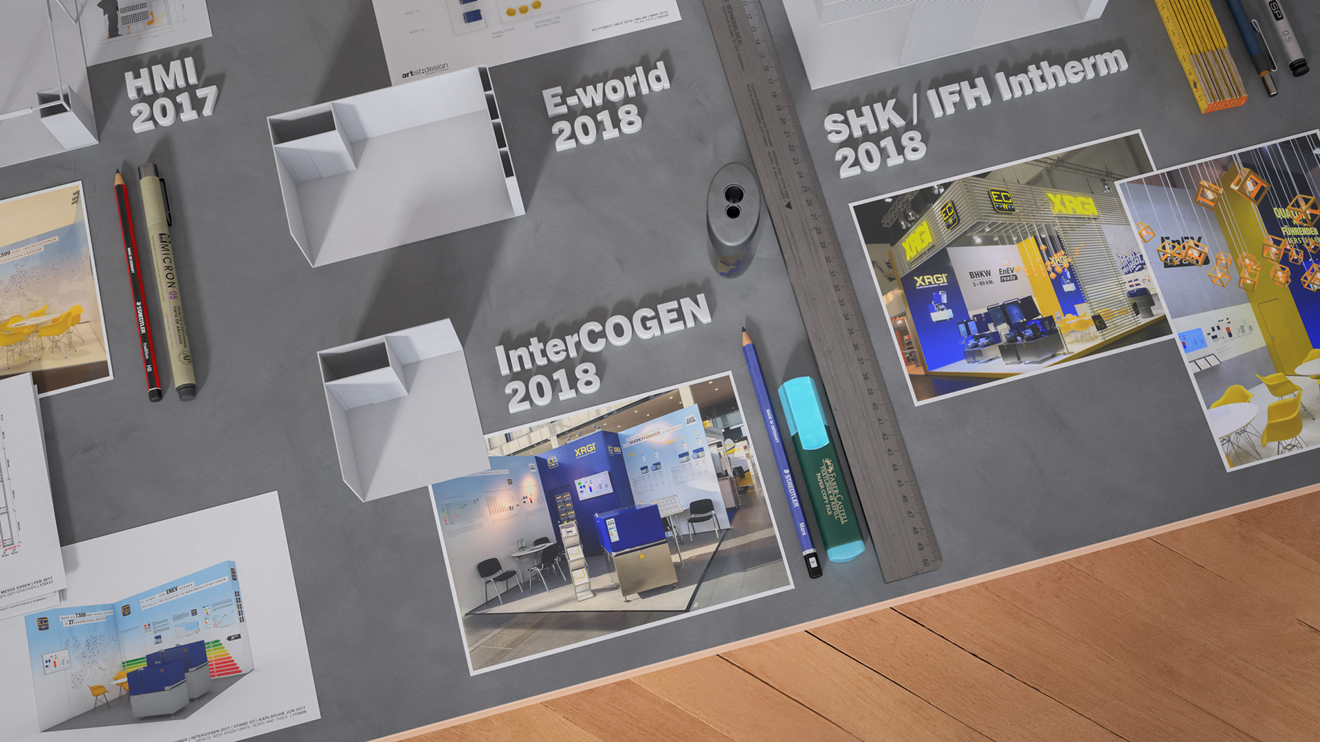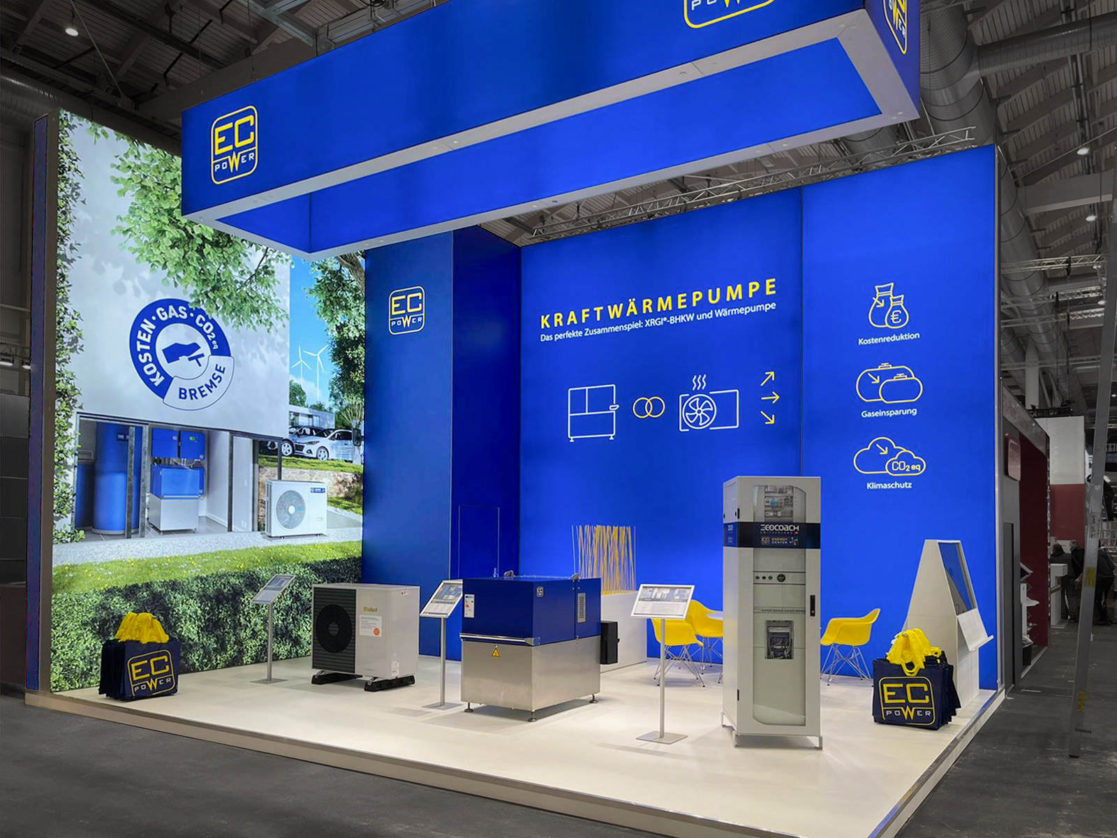 During my time at Artist Design, I was involved in the realization of approximately 50 trade fair stands. The agency's main client was EC POWER, but projects were also completed for BKWK (Federal Association for Combined Heat and Power) and Zukunft Gas.
