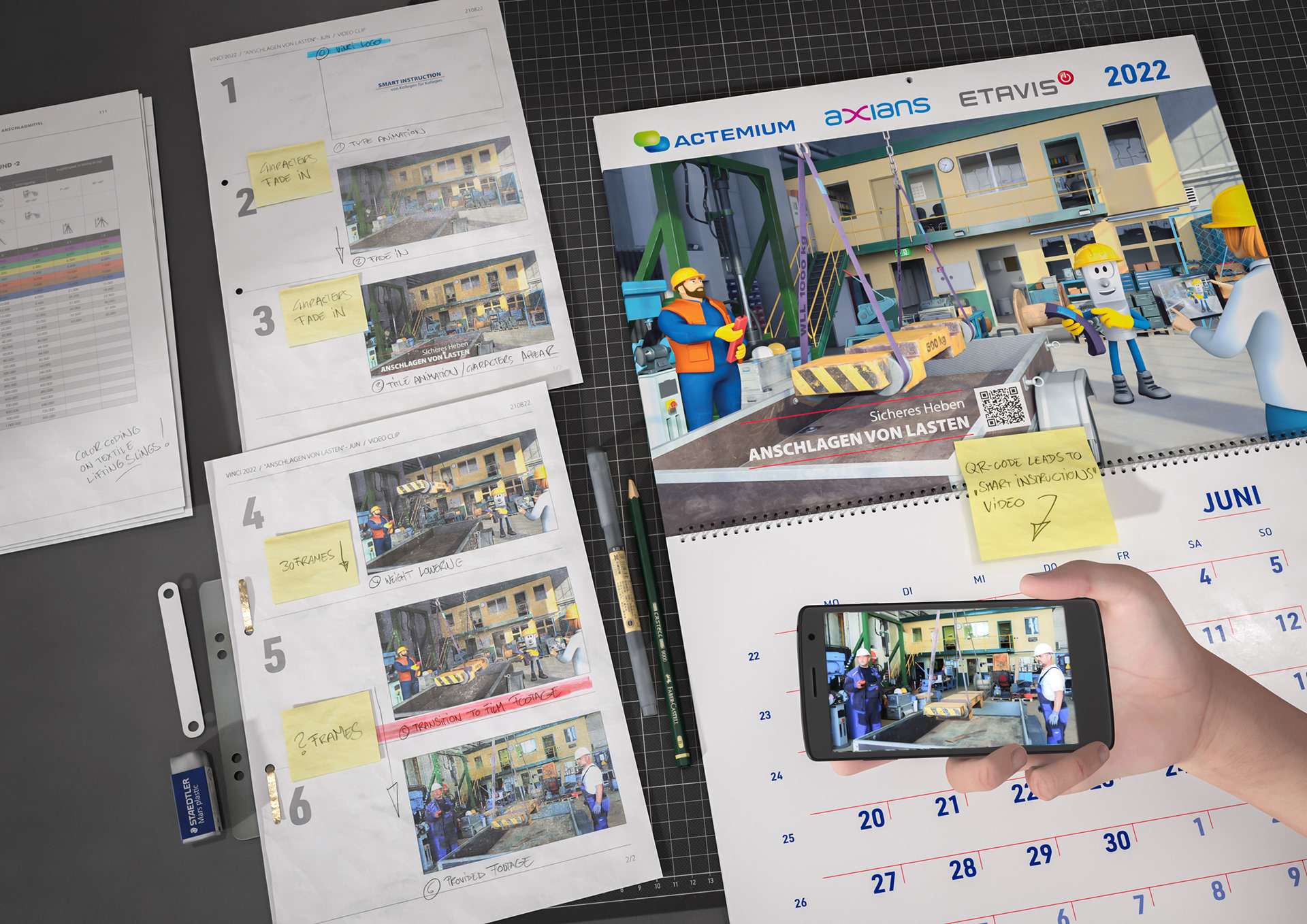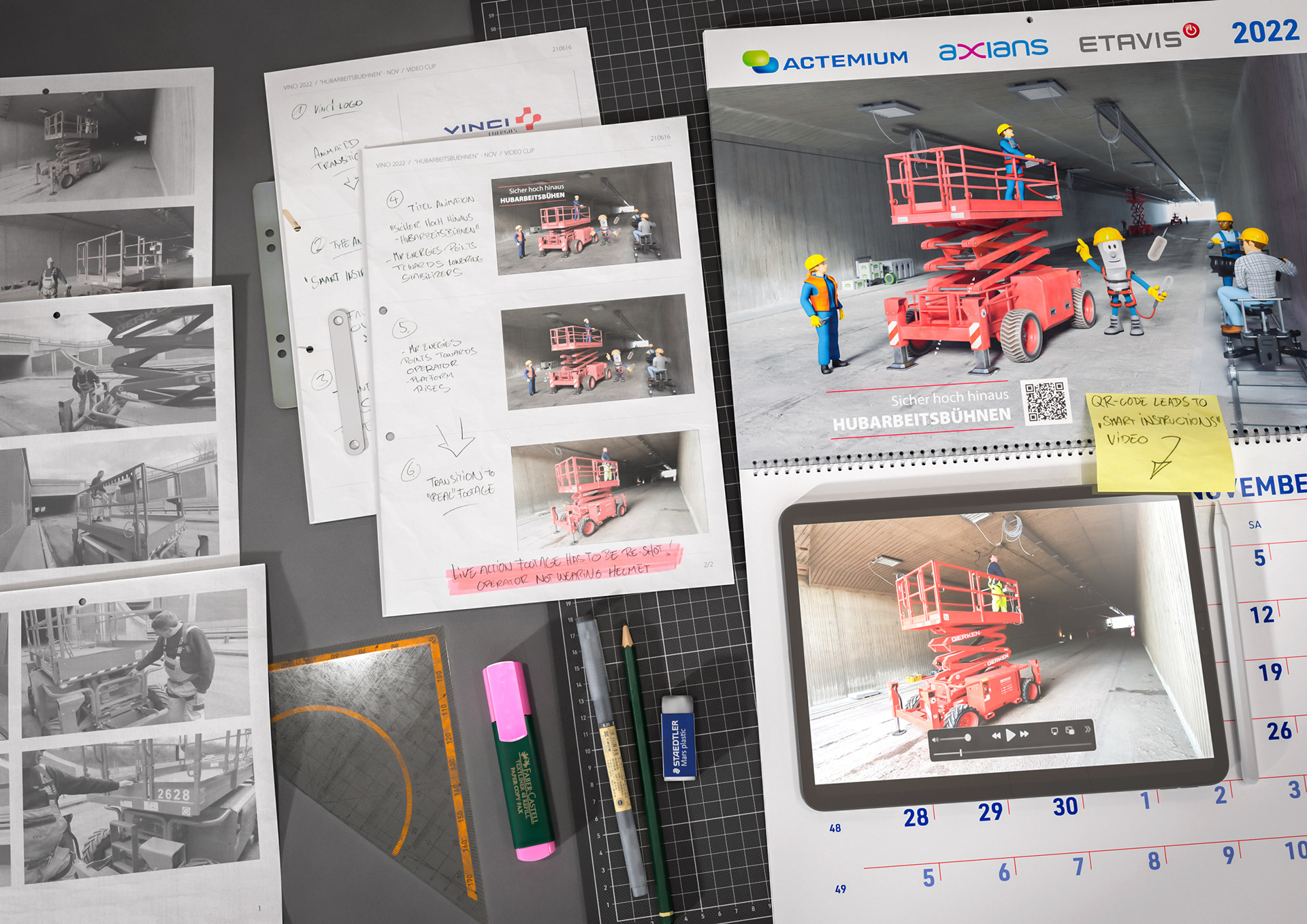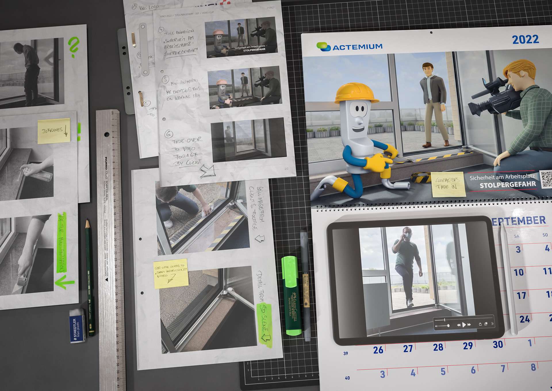 At Artist Design, the idea emerged to base the calendar motifs on scenes from the client-produced videos and to replicate them as accurately as possible. Additionally, a short animated intro was created for the videos, designed to transition seamlessly into the client’s footage. Furthermore, the concept of incorporating a camera crew into each motif was developed to create the impression of a "making-of" scenario for the videos.