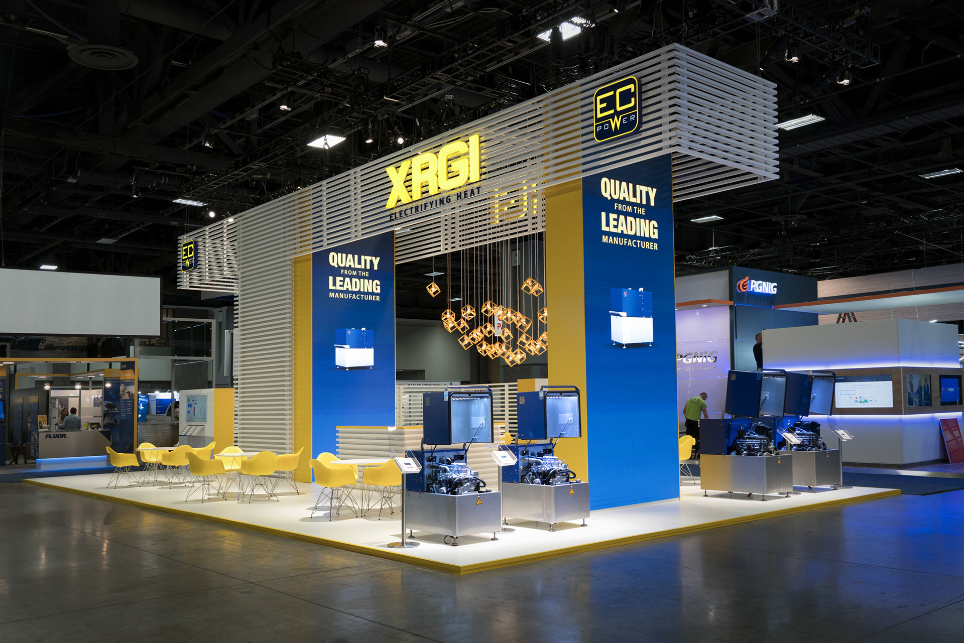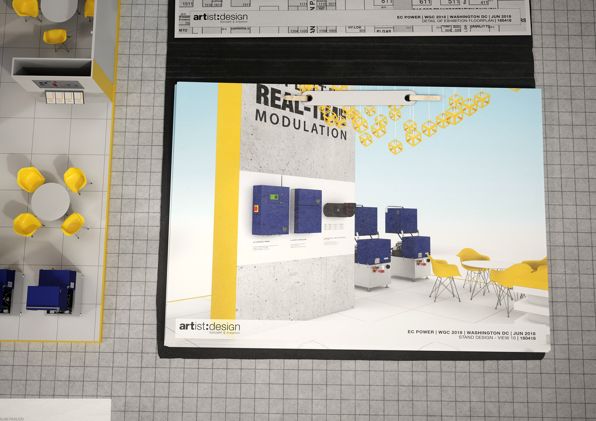 The client placed a high priority on their appearance at WGC 2018, which was reflected in the planning phase: an unusually high number of design iterations were presented before a final concept was agreed upon that satisfied everyone.
